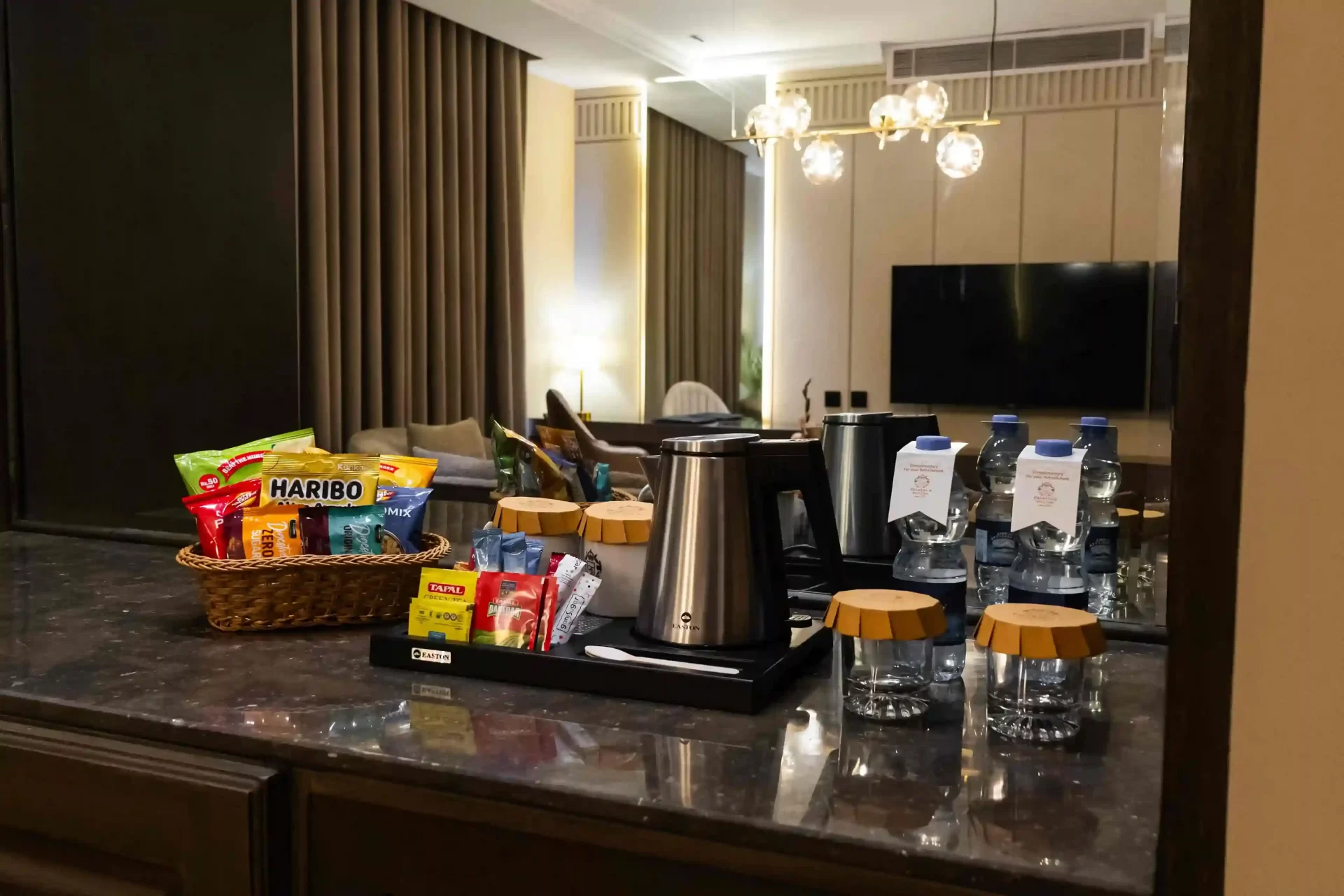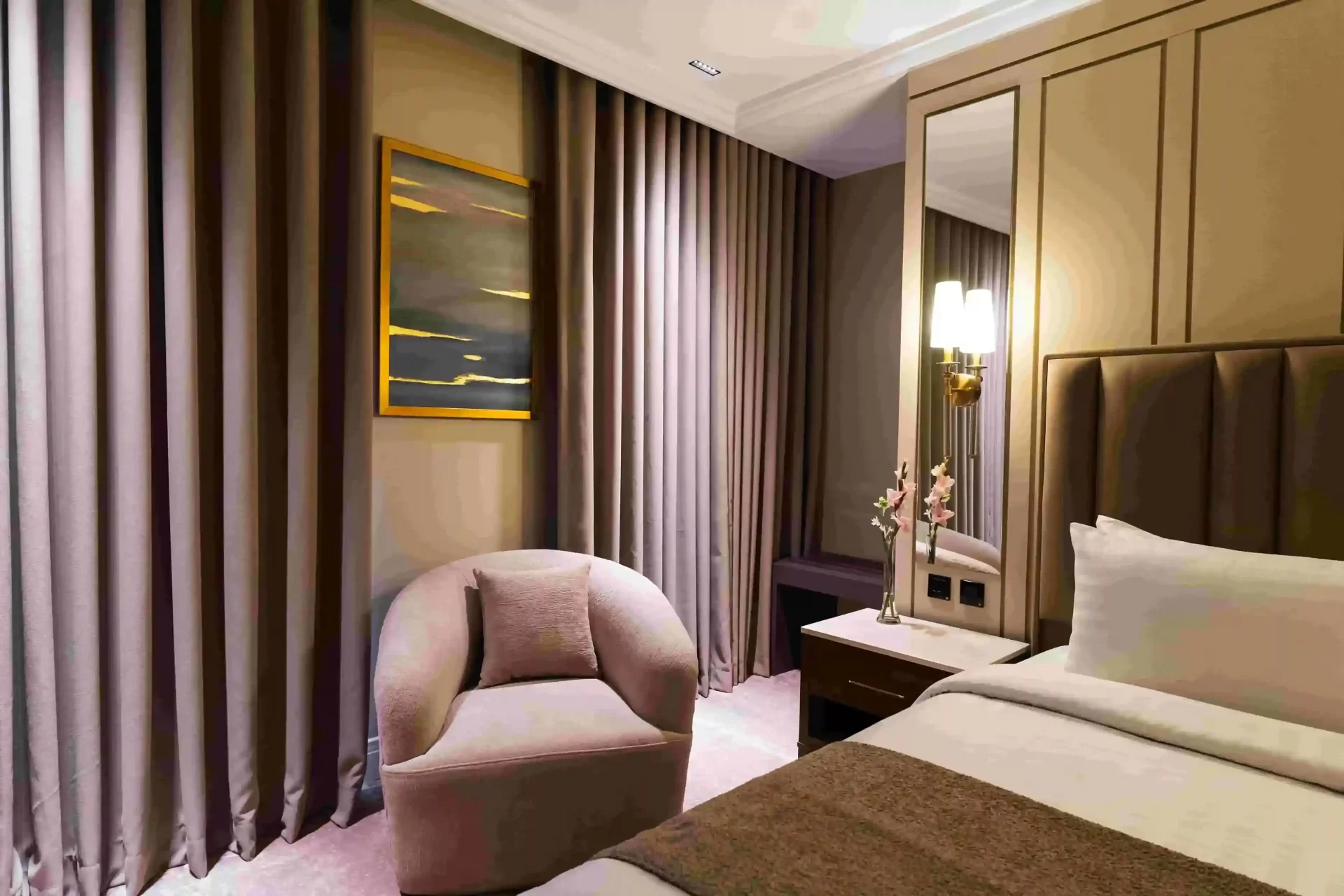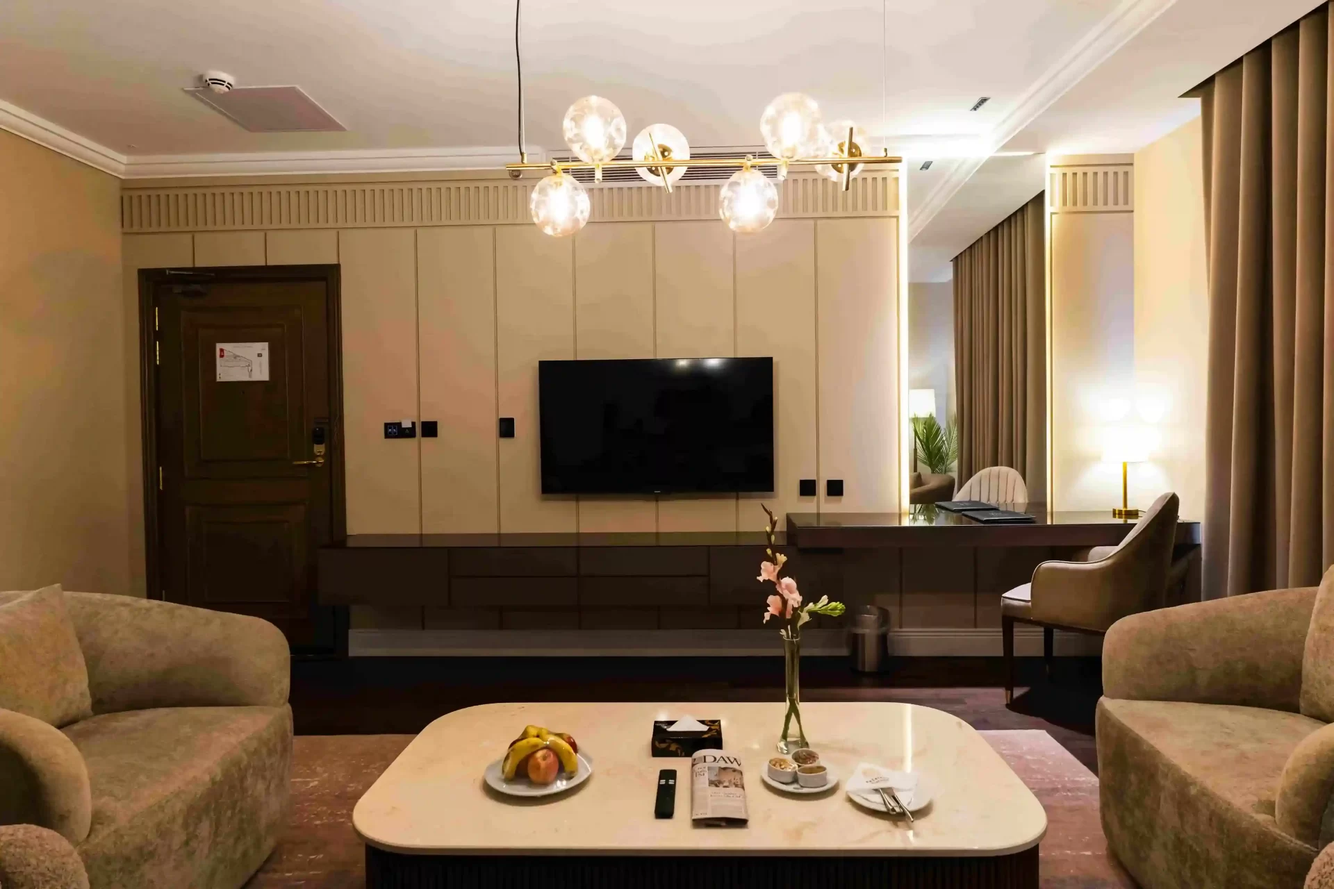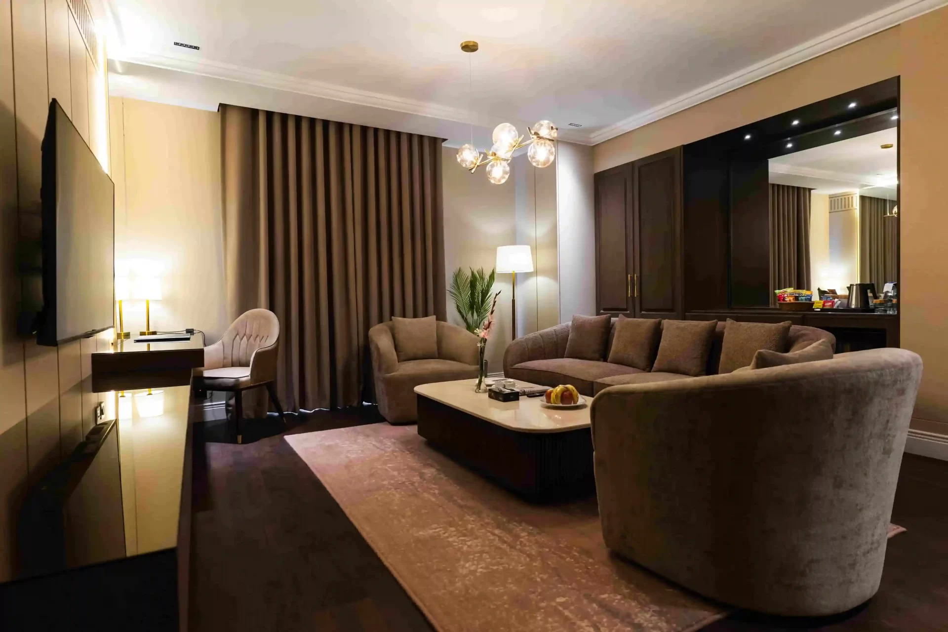Discover a world of understated elegance in our Presidential Suite, where sophistication meets comfort in every detail. Designed for guests who appreciate privacy and space, the suite features a beautifully appointed king-size bedroom, a separate sitting area, and a dedicated workspace — ideal for both relaxation and productivity.
