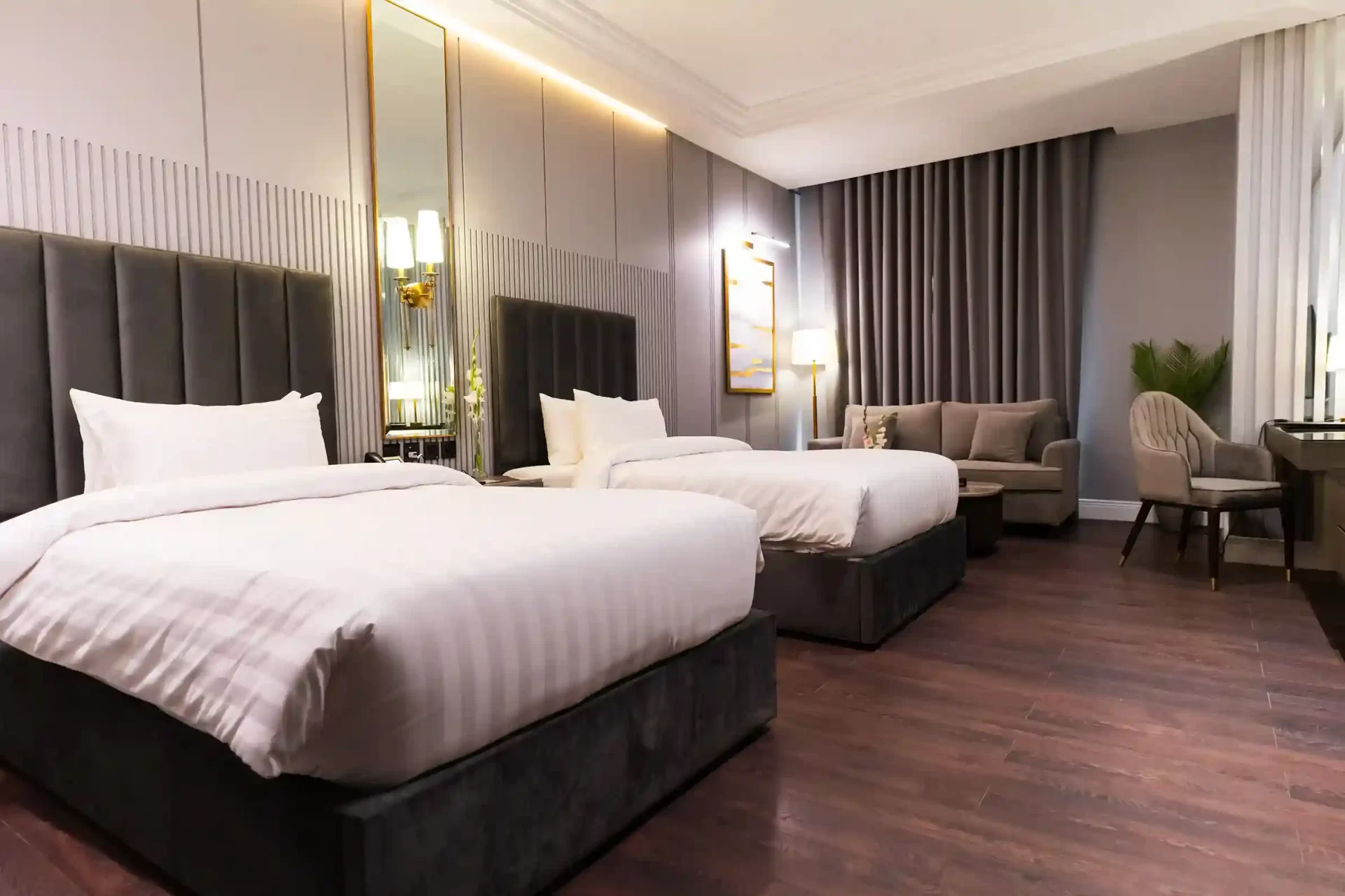 Stylish, spacious, and thoughtfully designed, the  Twin Deluxe Room is ideal for friends or colleagues sharing their stay. With two plush single beds, elegant contemporary décor, and a soothing color palette, it creates a calm and comfortable environment to unwind after a busy day. The room features a generous work area and all the modern amenities you need, ensuring a stay that feels relaxed, refreshing, and effortlessly comfortable.
